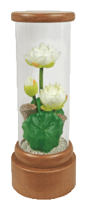 コンパクトで場所をとらない要素を一体化した光源付きアーティフィシャルフラワー飾りです。